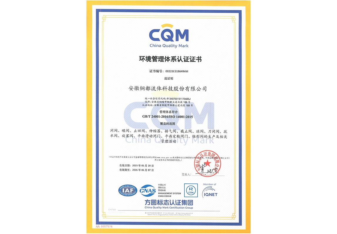 ISO14001環(huán)境管理體系認證證書