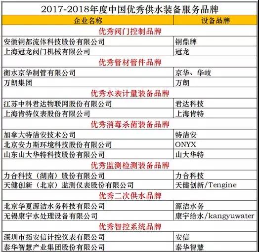 2017-2018年度中國優(yōu)秀供水裝備服務品牌