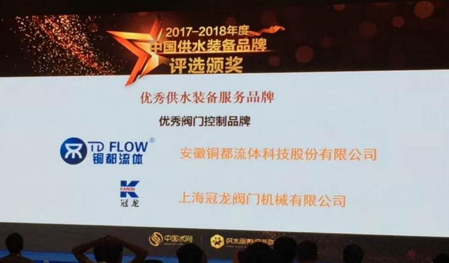 2018年6月28日 在江西南昌舉行的第三屆供水高峰論壇上,安徽銅都流體科技股份有限公司榮獲"2017-2018年度中國優(yōu)秀供水裝備服務品牌"。