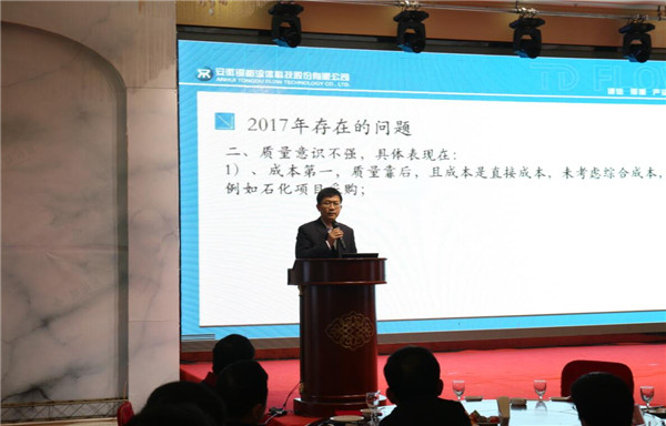 年會上,公司副總經理楊凌杰作2017年度營銷工作報告, 公司總經理趙小虎對2017年度工作作了全面總結,充分肯定了公司近三年來各項核心指標均實現(xiàn)兩位數(shù)增長的成績,指出了目前管理工作中存在的不足,提出了具體改進措施,并明確了2018年核心經營目標。公司董事長楊成結合行業(yè)及公司當前發(fā)展趨勢,從公司長遠發(fā)展、做大做強戰(zhàn)略高度,深刻分析了銅都流體面臨嚴峻的挑戰(zhàn)形勢,并指明企業(yè)的發(fā)展策略以及發(fā)展措施,并號召全體員工不忘初心,繼續(xù)發(fā)力,使銅都流體新年再上新臺階。