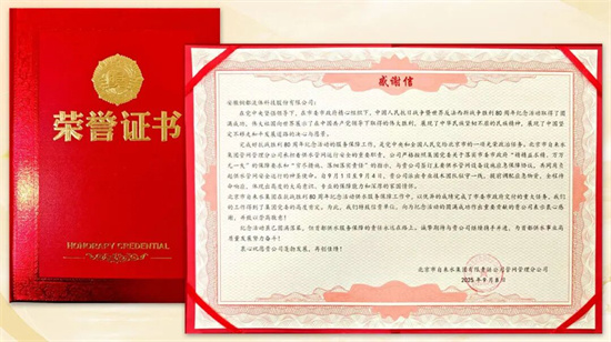 收到北京自來(lái)水集團(tuán)來(lái)信感謝