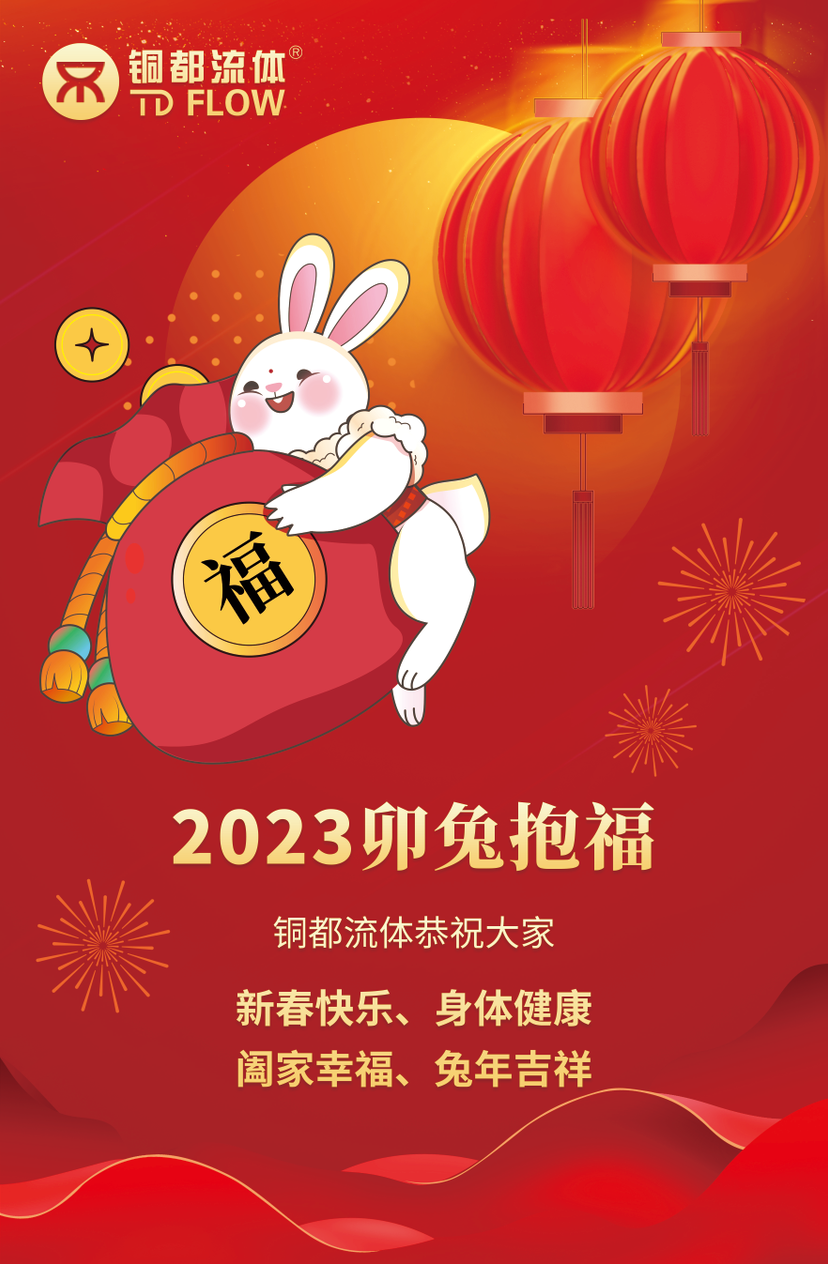 日月其邁,歲律更新。轉(zhuǎn)眼間, 2023年新春佳節(jié)正闊步走來(lái),值此歡慶之際,銅都流體向一直關(guān)心支持公司發(fā)展的各界領(lǐng)導(dǎo)、廣大客戶朋友們以及為公司付出辛勤勞動(dòng)和無(wú)私奉獻(xiàn)的全體員工們致以衷心的感謝和誠(chéng)摯的新春?jiǎn)柡颍?